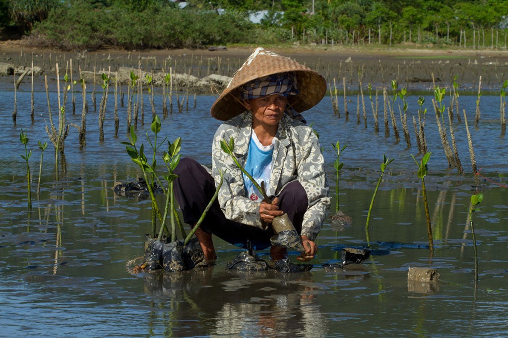 Les mangroves sont des groupements d’arbres et de buissons que l’on retrouve à l’intersection de la mer et des terres. Elles font partie des écosystèmes les plus riches sur notre planète. Bouclier biologiques pour les régions côtières, elles abritent de nombreuses espèces de poissons, crustacés et mollusques. Les forêts de mangroves disparaissent sous les coups de la récolte de bois de chauffe, la surpêche et la pollution. Les communautés rurales qui dépendent de ces écosystèmes s’en trouvent menacées. Le Fonds Carbone Livelihoods a permis à des communautés particulièrement vulnérables de restaurer leurs forêts de mangrove.